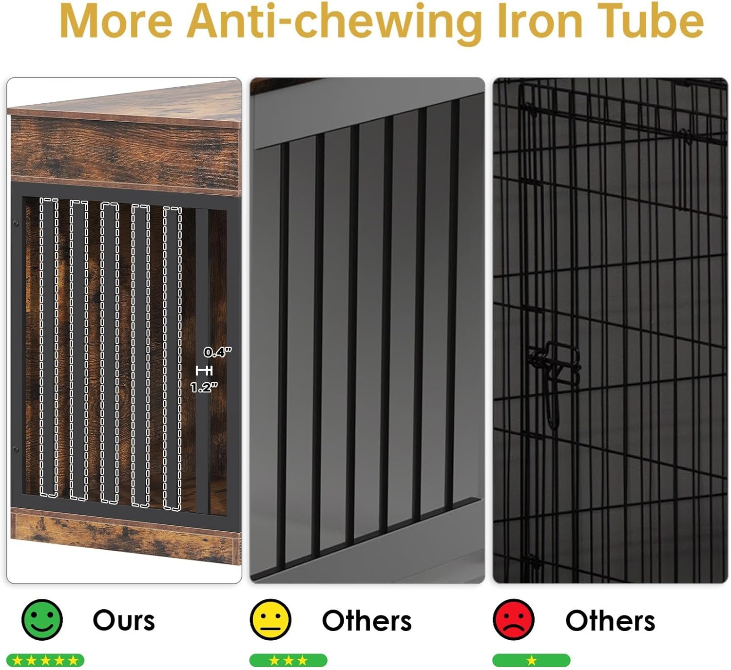 48'' Dog Crate Furniture with Removable Divider & Storage Drawers, Wooden Double Dog Cage TV Stand with 2 Sliding Barn Doors, Multi-Functional Dog Crate End Table for Indoor use (Retro Brown)