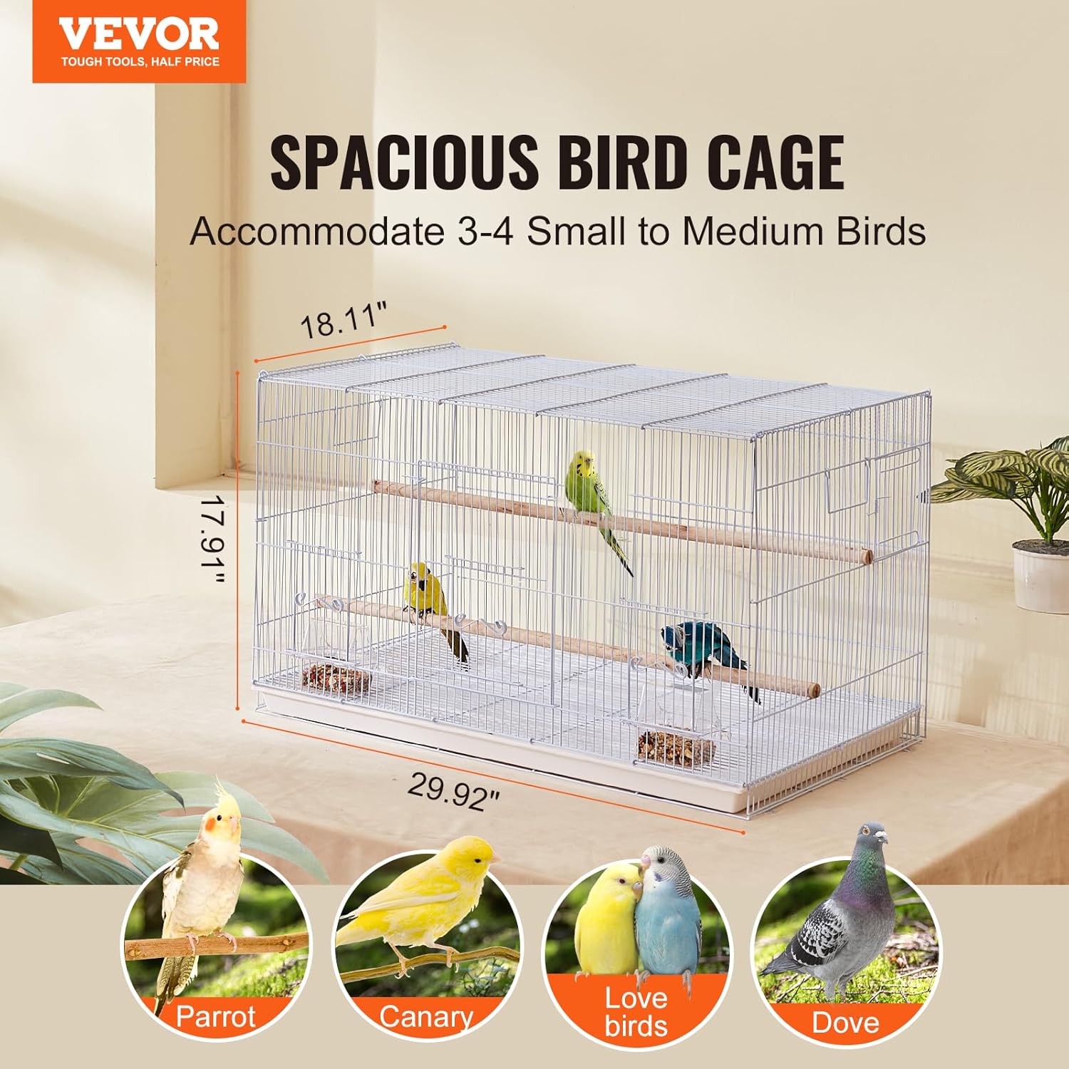VEVOR 30-inch Flight Bird Cage, Stackable Bird Cage for Small Parrots Canaries Cockatiels Lovebirds Finches Budgies Conures Macaws Pet Travel Birdcage with Handle and Perches