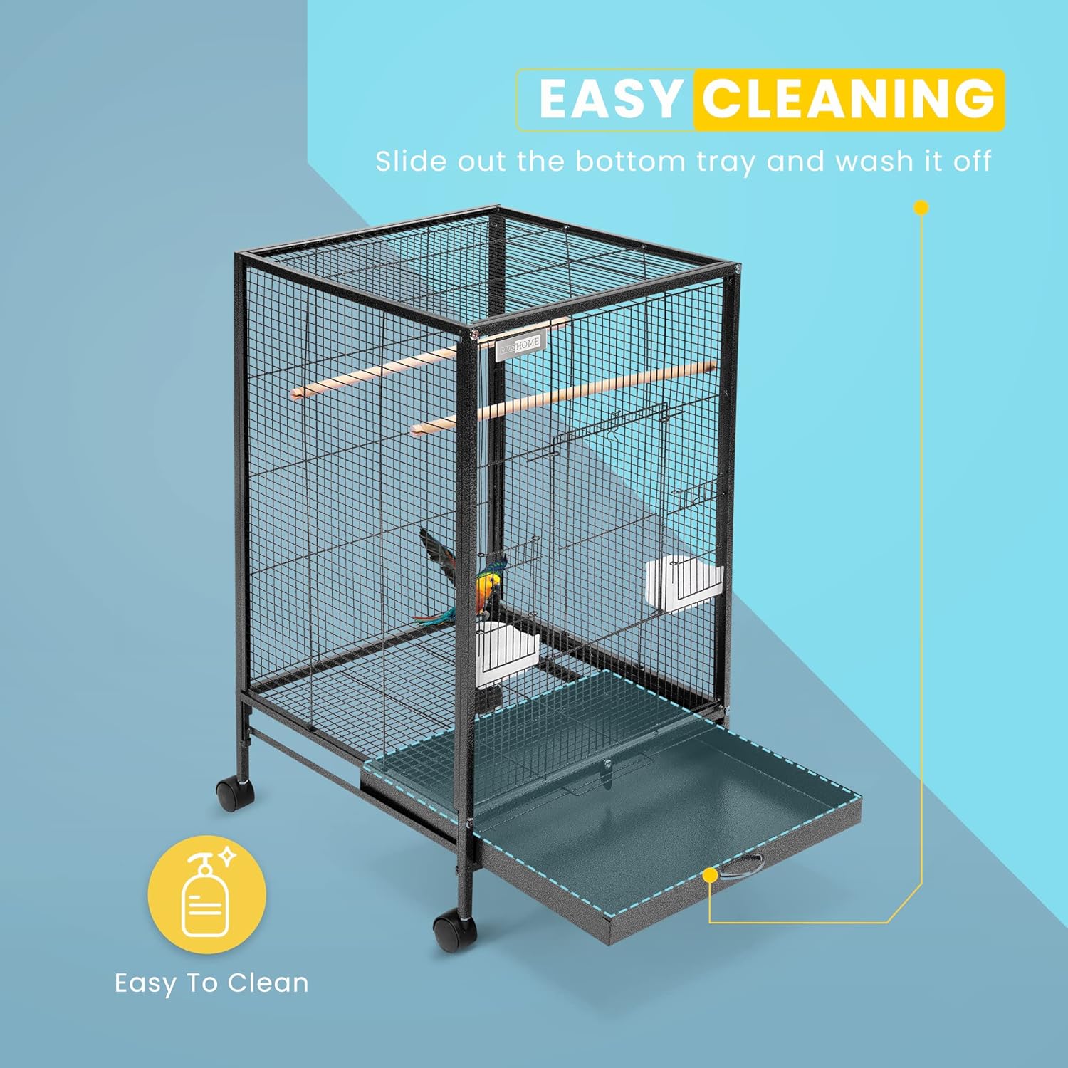 Made from low-carbon steel, itβs sturdy and hard-wearing. With 4 mobile casters, you can move the birdcage freely wherever you need. The flat top offers more space for you to hang various bird toys. Give your birds a safe and comfy living environment by using this VIVOHOME bird cage!