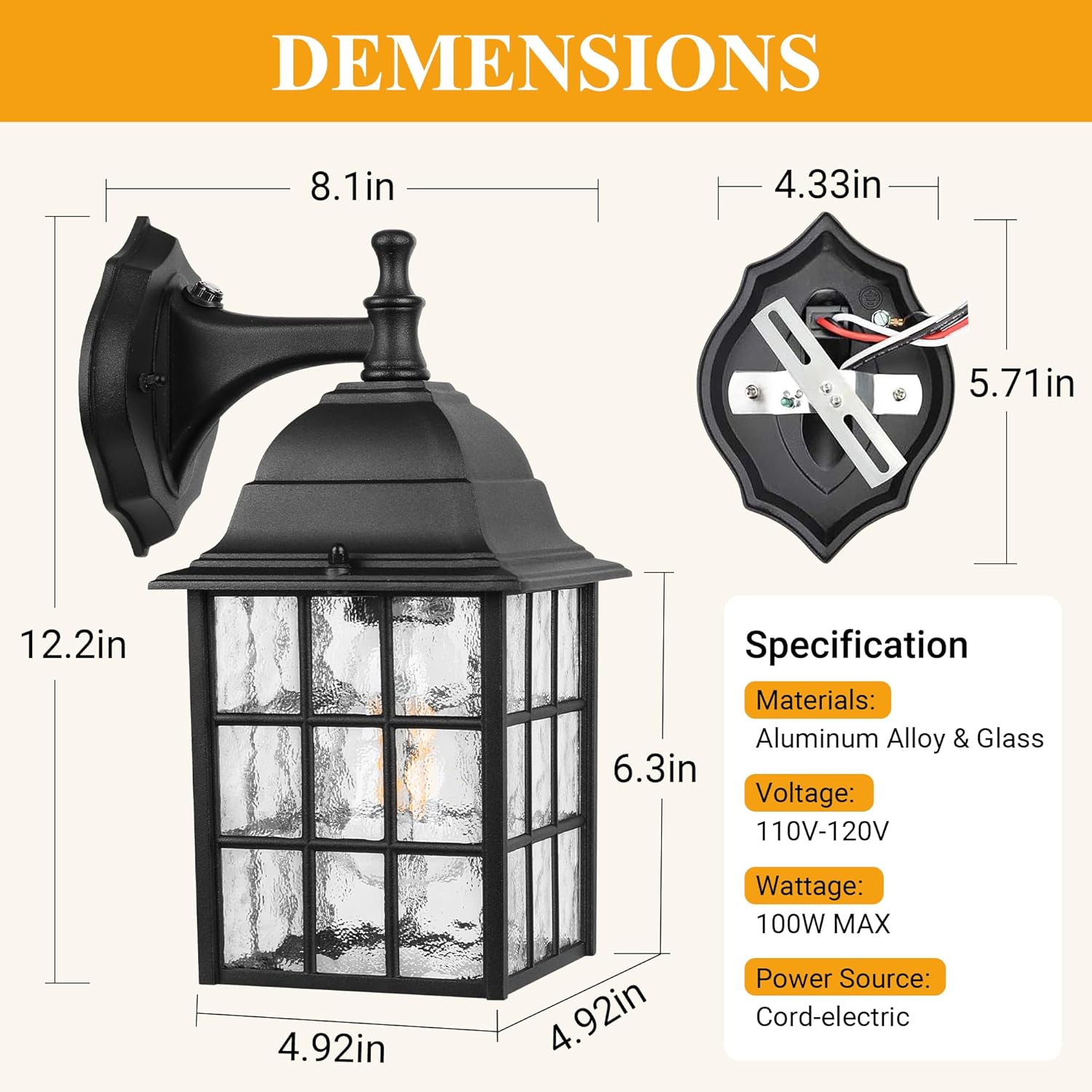 WIHTU 2-Pack Dusk to Dawn Outdoor Wall Lights, Sensor Exterior Light Fixtures, Porch Lights, Black Waterproof Wall Sconces, Outside Lighting for Garage, Front Door