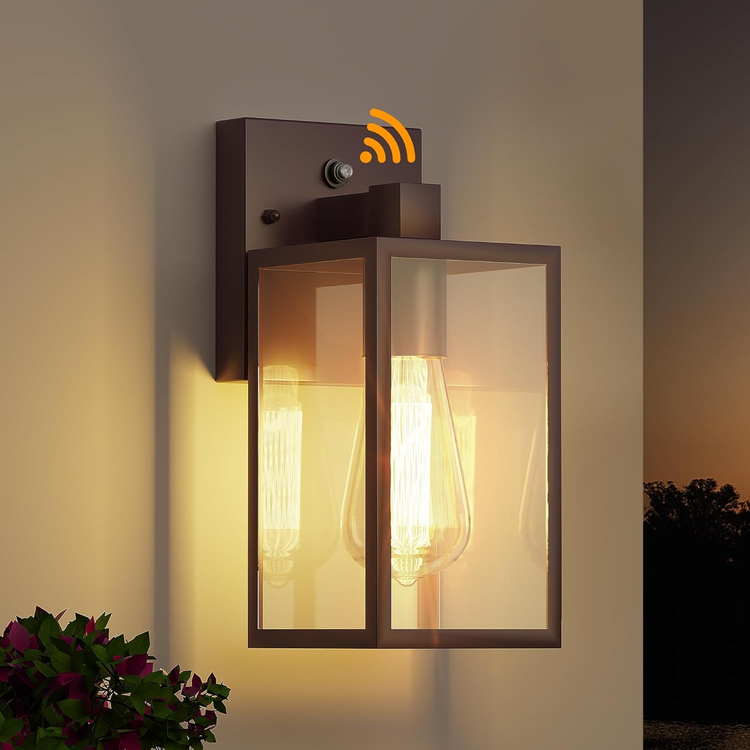 WIHTU Dusk to Dawn Outdoor Lighting Fixtures, Exterior Front Porch Light, Black Sensor Wall Sconce Lamp, Waterproof Wall Lantern, Anti Rust Outside Coach Lights for House, Doorway, Garage