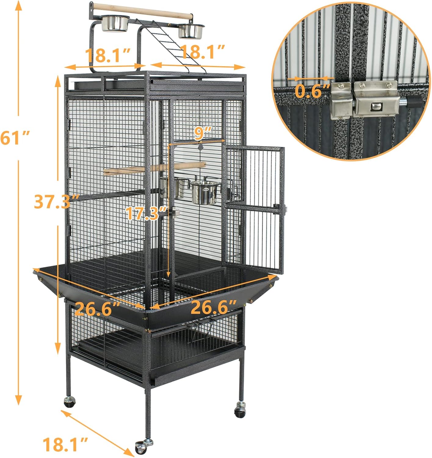 ZENY 61-inch Playtop Parrot Bird Cages, Wrought Iron Large Birdcage with Rolling Stand for Parakeet Cockatiels Quaker Conure Lovebird Finch Canary Small Medium Parrot Cage Birdcage (Black)